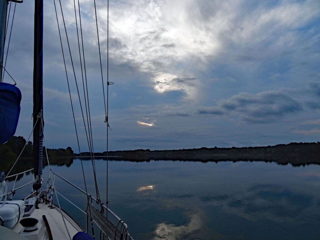 Es kommt ein wenig Wind auf, der bringt uns aber auch nicht weiter. Gegen Abend soll es regnen, deshalb ziehen wir es vor, die letzten Seemeilen auch zu motoren.