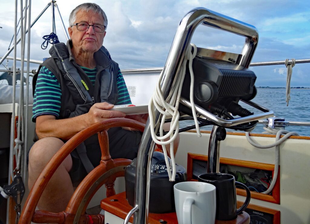 Heute vor der Abfahrt hatte ich das Ruder der Hydrovane abgenommen und auf der Badeplattform gestaut. Das Schiff lässt sich heute sehr viel leichter steuern und fährt bei 1.800 RPM leicht über 6 Kn.