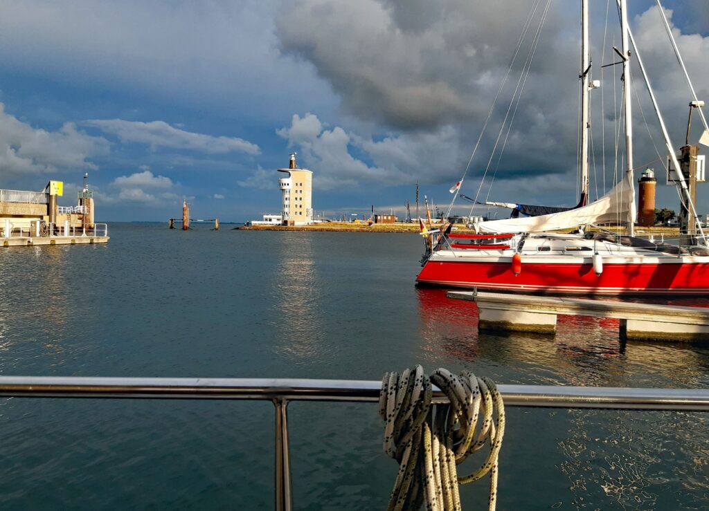Das Wetter ist bescheiden und wir warten auf den angesagten Starkwind, der auch gegen 14:00h kommt. Aber nur für ca. 30 Minuten und die paar Böen höchstens mit 6 Bft. Da hätten wir auch fahren können.