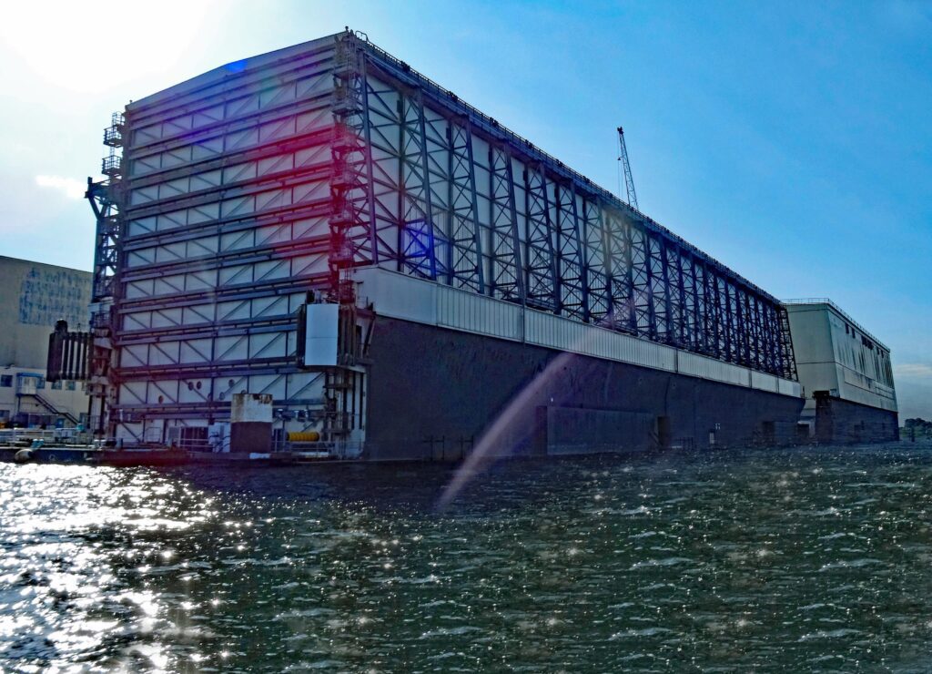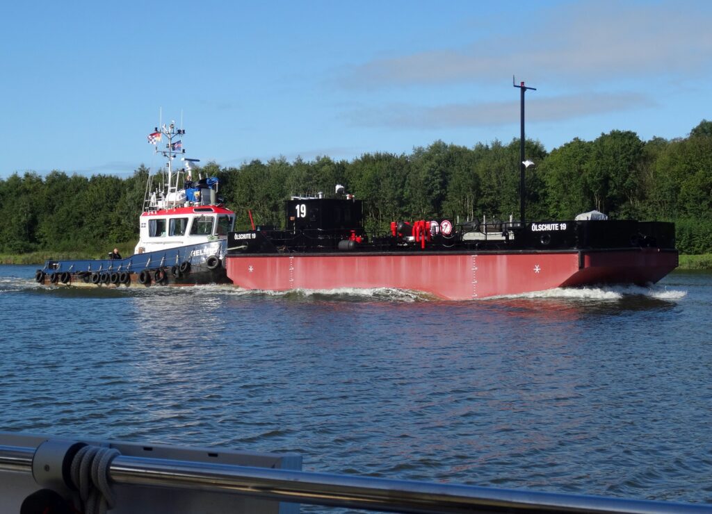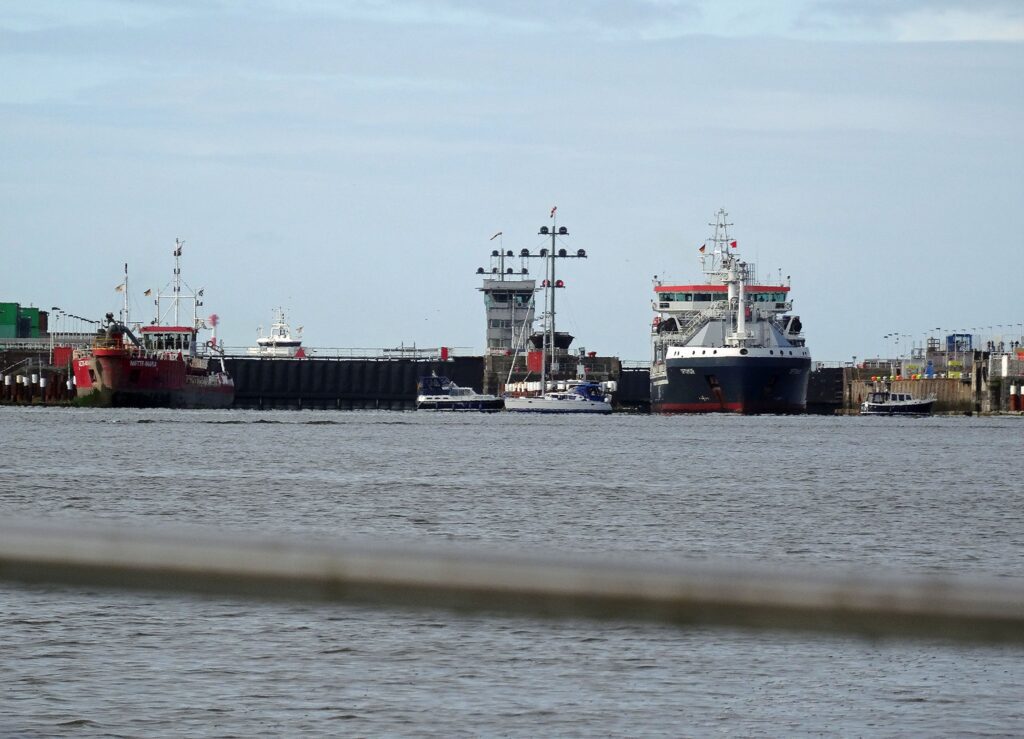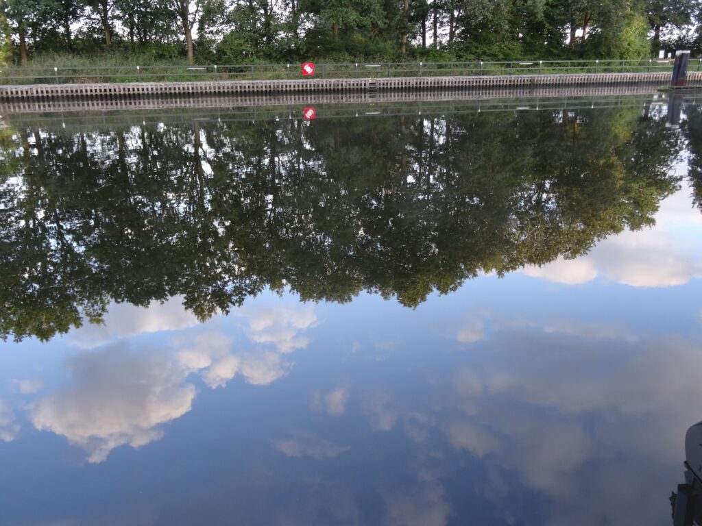 Es ist schon erstaunlich, wie sich manchmal der Wasserstand ändert, wenn im nahen Kanal ein großes Schiff vorbeifährt.