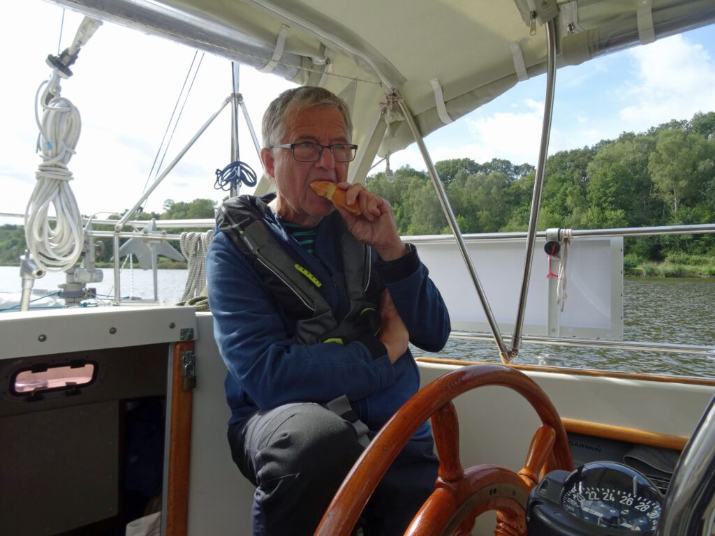 Der Himmel öffnet unterwegs sämtliche Schleusen. Schön ist etwas anderes. Aber schön, dass wir mit geschlossener Kuchenbude fahren konnten. An Segeln war überhaupt nicht zu denken.