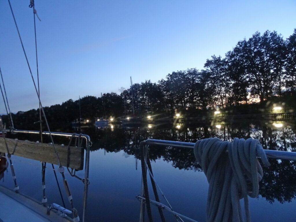 Eine knappe Stunde später sind wir im Schleusenhafen, wo wir noch soeben einen Platz am Längssteg ohne Strom bekommen. Am Abend gibt es leckeren Nudelsalat mit gebratener Fleischwurst.