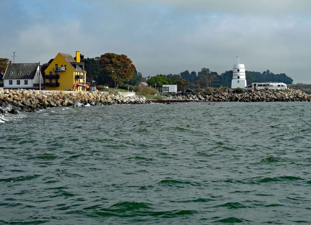 Gegen 15:30 passieren wir den Leuchtturm Dragden, der im leichten Dunst fast über dem Wasser zu schweben scheint und biegen ab in das Fahrwasser nach Kopenhagen.