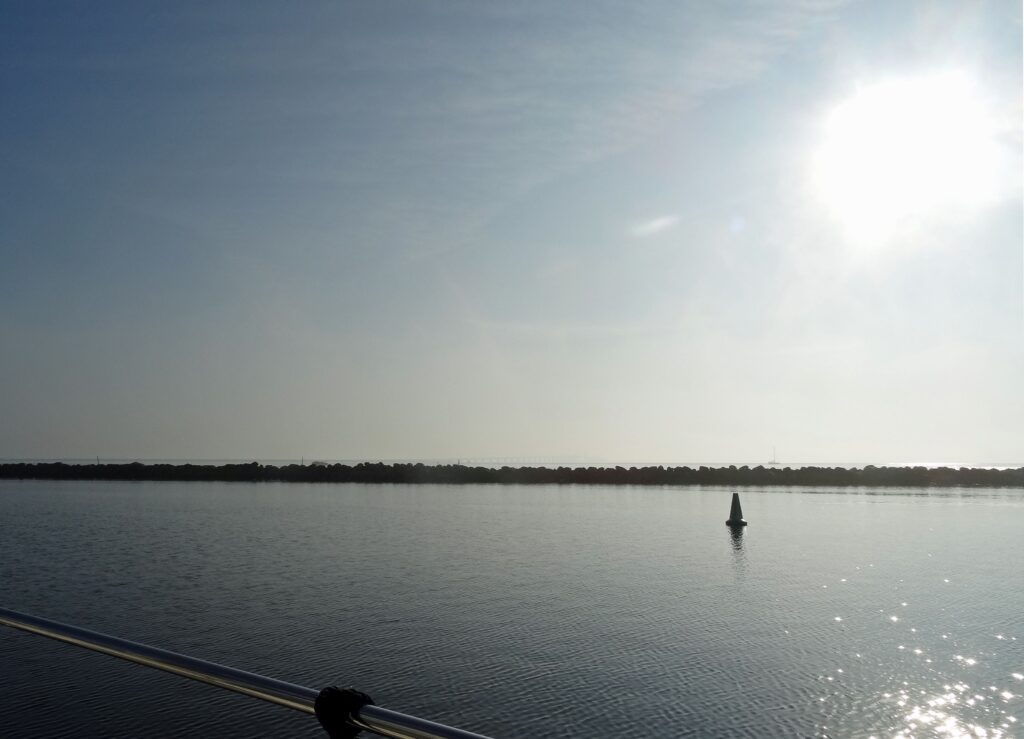 Nach langer Zeit scheint beim Aufstehen die Sonne. Der Wind soll heute nochmal kräftig auffrischen. Ich nehme nach wie vor am Morgen und am Abend eine Schmerztablette und versuche mich sehr zu schonen, damit ich den Törn einigermaßen schmerzfrei bis zum Ende erlebe.