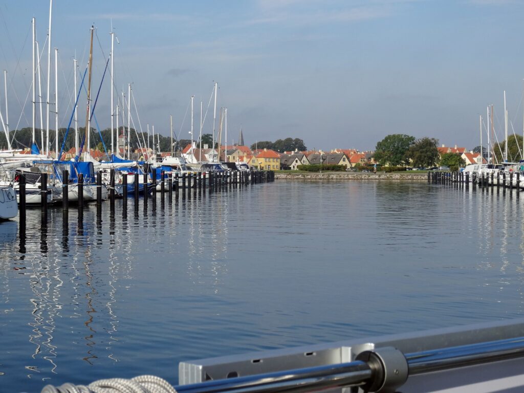 um 12:30h liegen wir nach 5,9 sm und 1,5 Std. fest im Hafen. Die Liegeplatzgebühr beträgt 160 DKK inkl. Strom und Duschen.