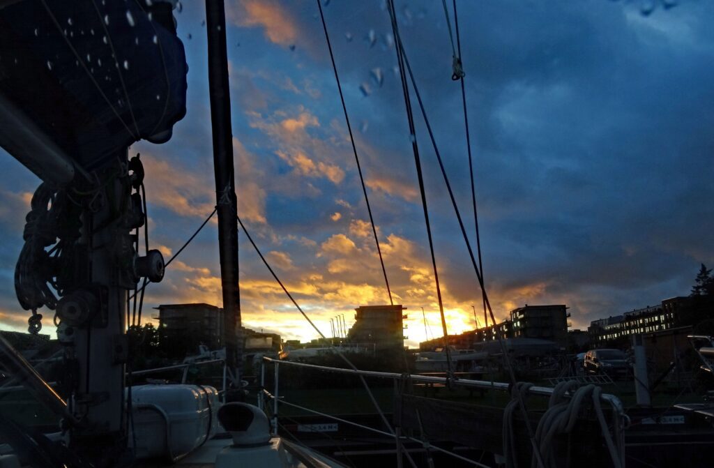 Zwischen den Regenschauern geht Wolfgang noch 2 x zu Lidl und holt insbesondere Wasser und Apfelsaft. Ansonsten verläuft der weitere Tag ruhig. Abends nimmt der Wind kräftig ab, soll aber morgen nochmal gut auffrischen.