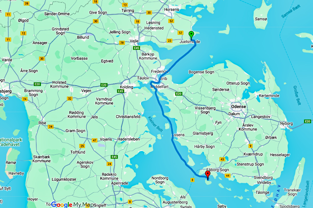 Unsere Route heute: Juelsminde -> Bucht von Lyø