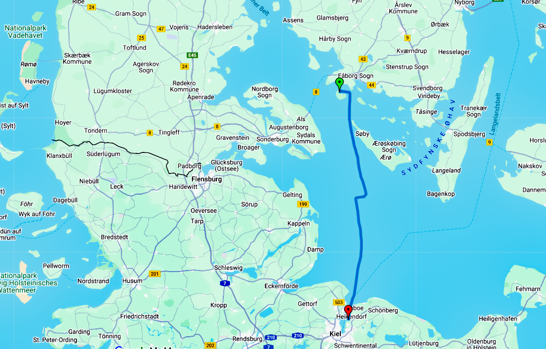 Unsere Route heute: Bucht vor Lyø -> Bucht vor Heikendorf