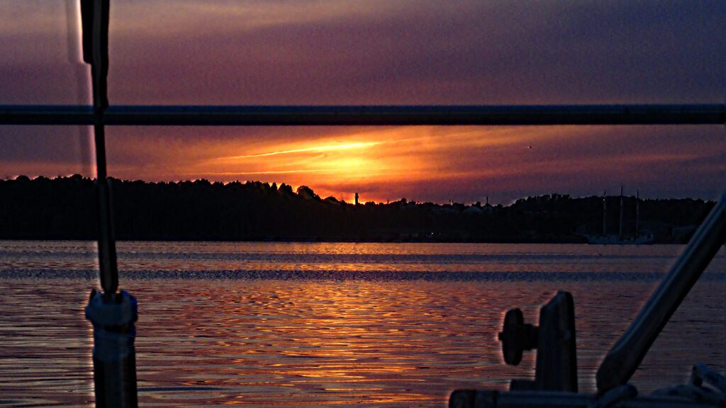 Wir können gleich die Fock und das Groß setzen, aber nach einer guten Stunde kommt der Wind aus SW2, also Motor an zur Unterstützung, denn wir haben ja Strecke vor uns.