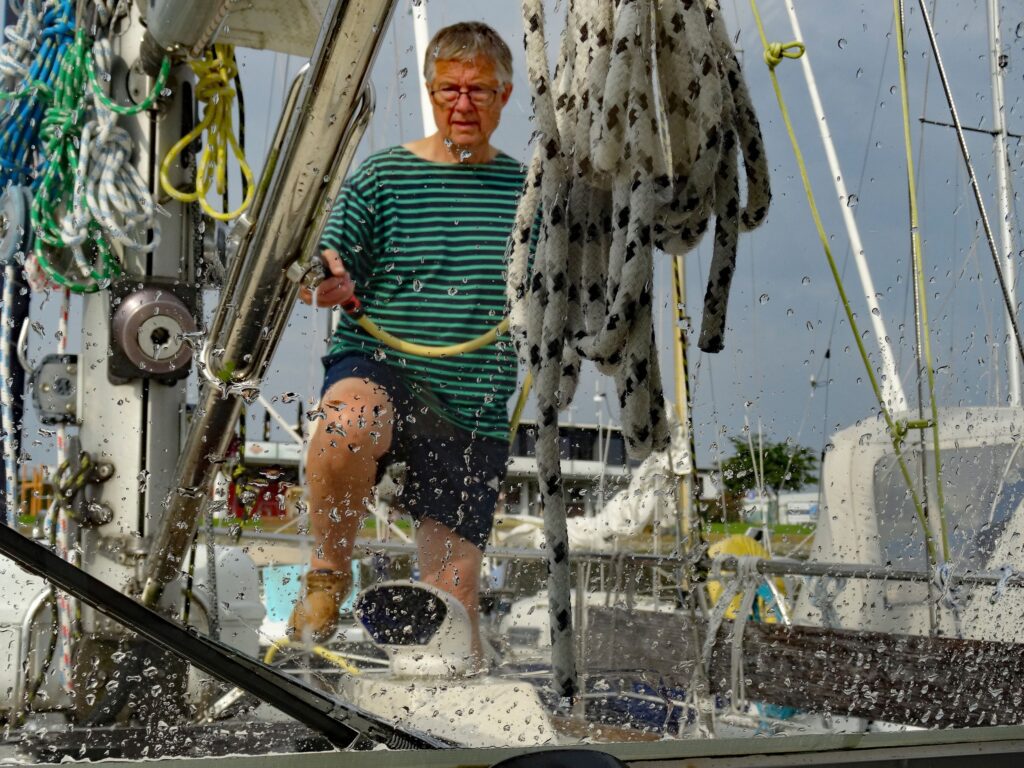 Gegen 12:00h sind wir zu hoch am Wind und nehmen die Fock runter.