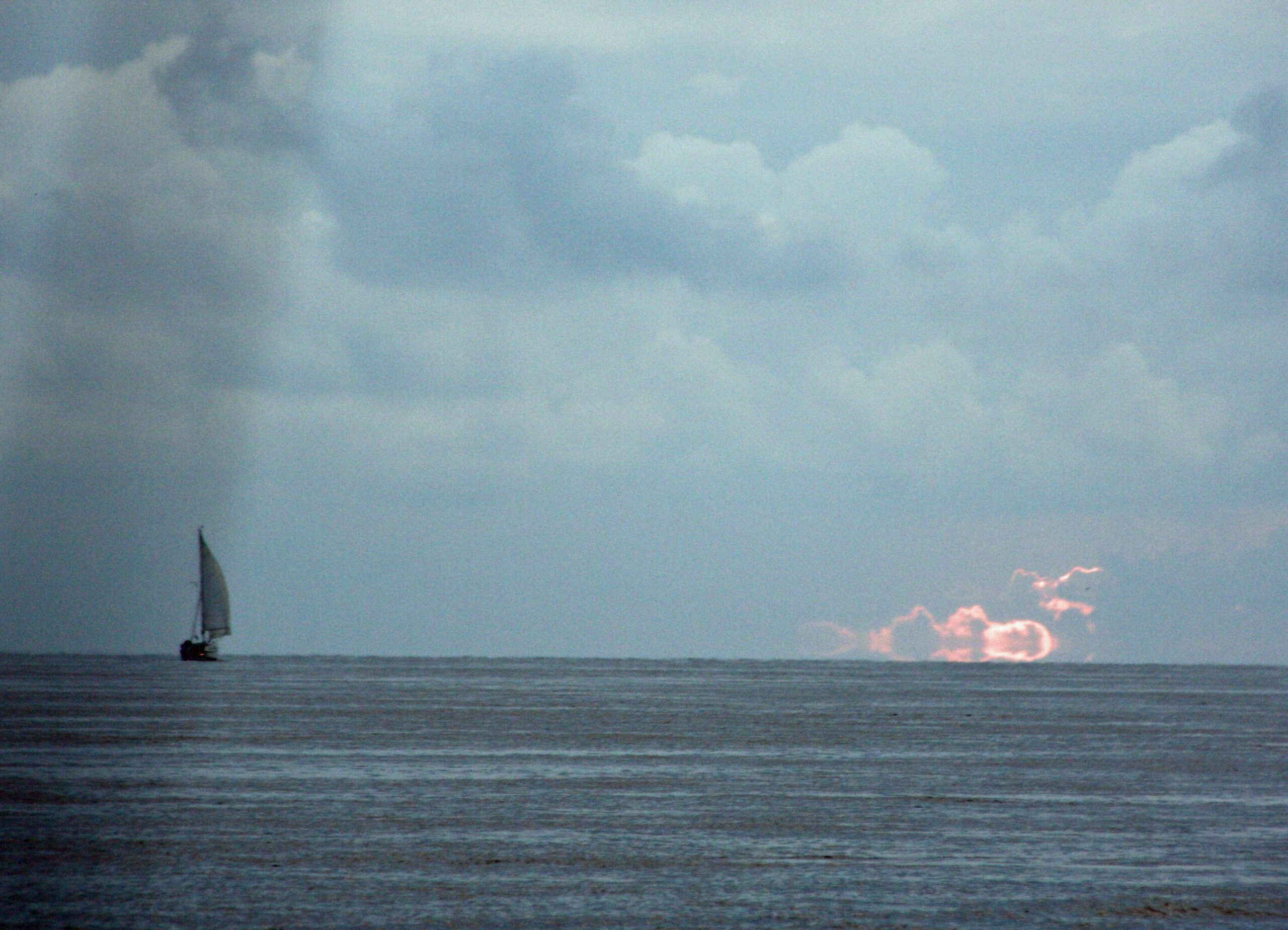 Man kann nur ahnen, wo die Sonne aufgeht, es ist sehr wolkig und es regnet zwischendurch immer wieder mal ein wenig.