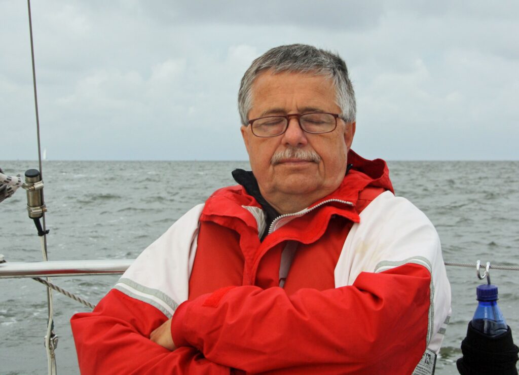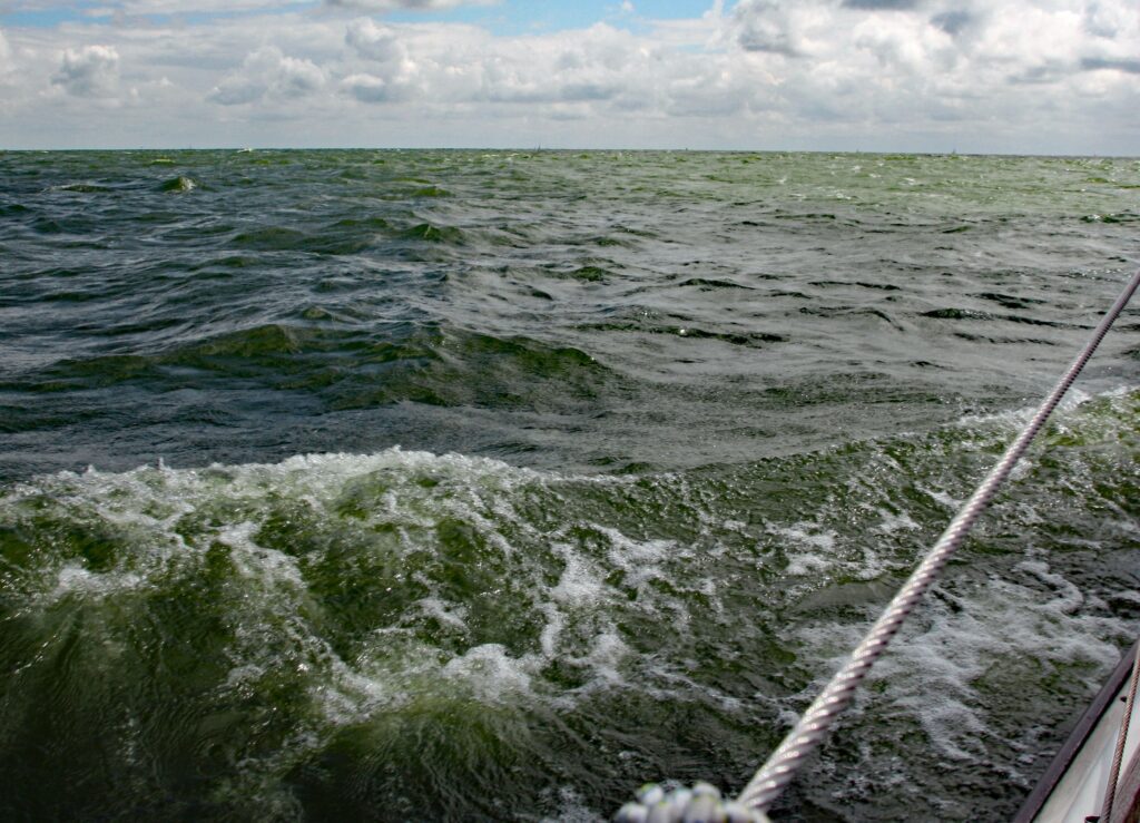 Gegen 11:00 Uhr nehmen wir dann Kurs auf Enkhuizen. Der Wind hat inzwischen auf NNW 4 in Böen 5 aufgefrischt. Unter Genua düsen wir mit 180° und teilweise 6-7 Kn das Ijsselmeer runter. Unter der “Double Fun” laufen von hinten tolle Wellen durch.