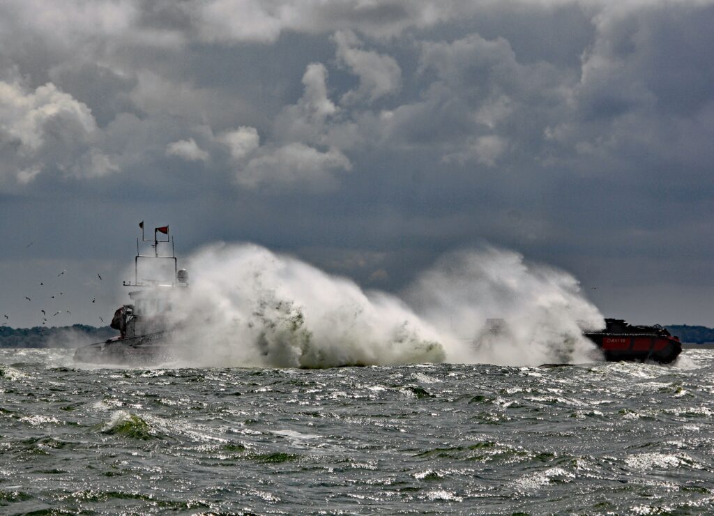 Wieder an Bord dauert es nicht lange, und es fängt an zu regnen. Teilweise gab es heftige Schauer.