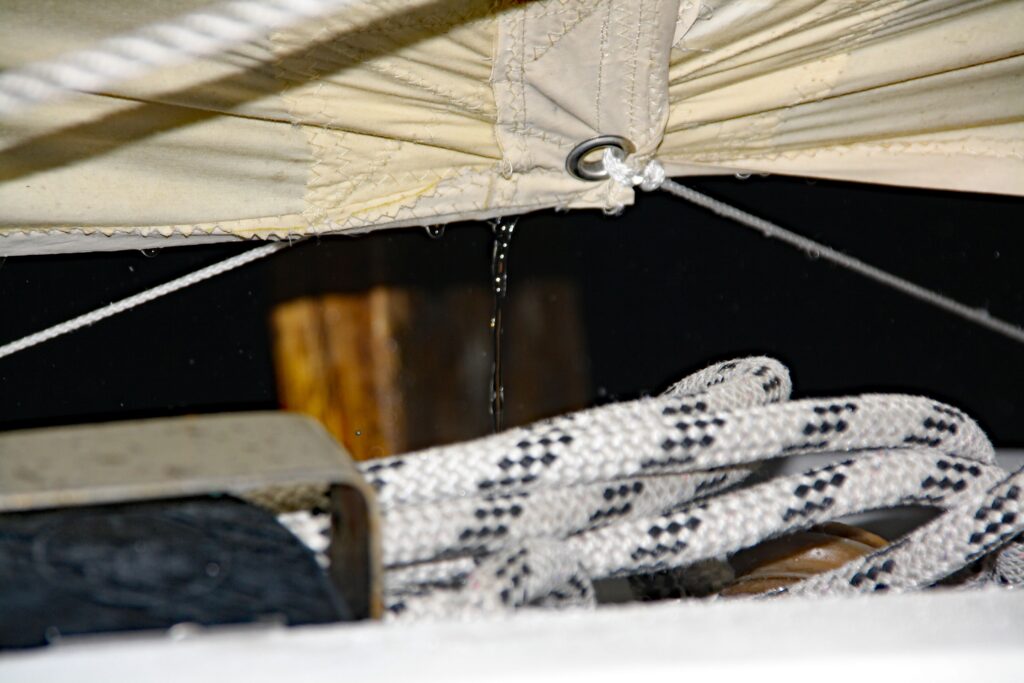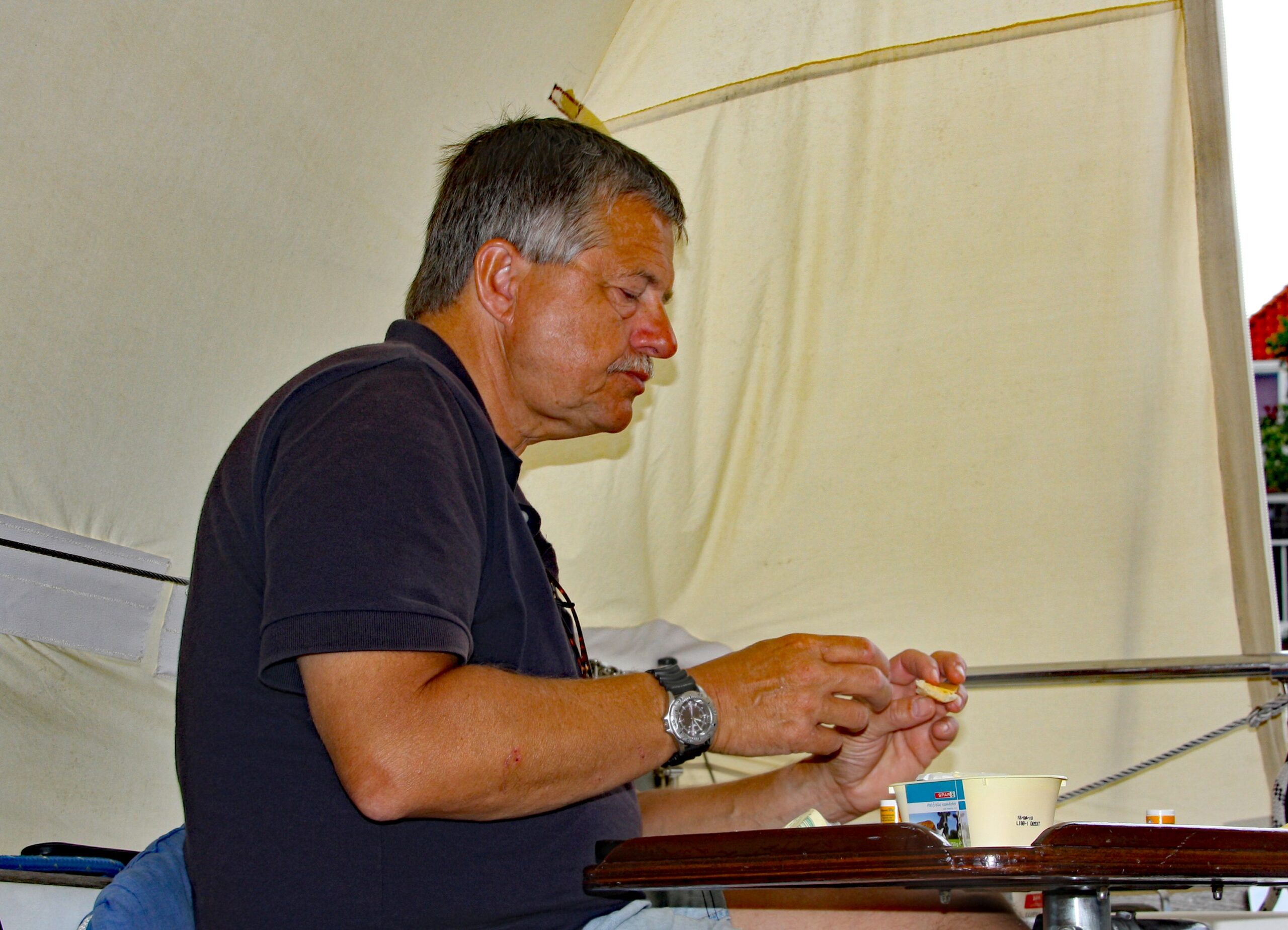 Am Nachmittag kommt die Sonne wieder heraus und es ist ziemlich warm, also als allererstes im Hafen: Cockpitzelt aufbauen.