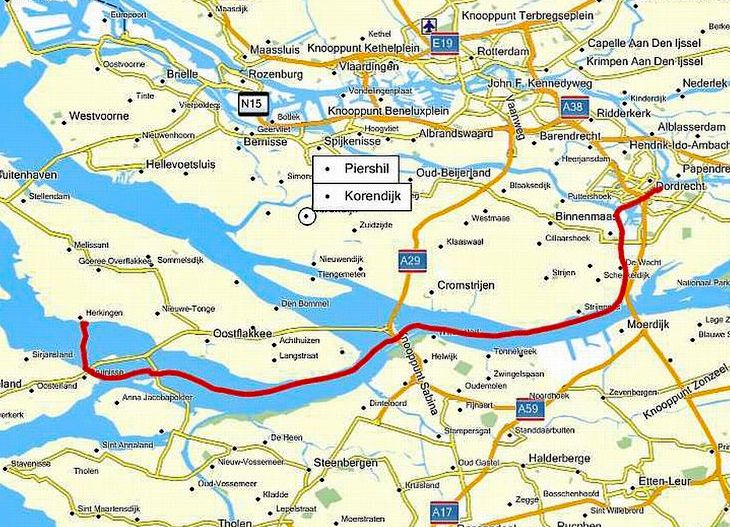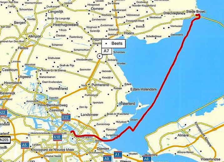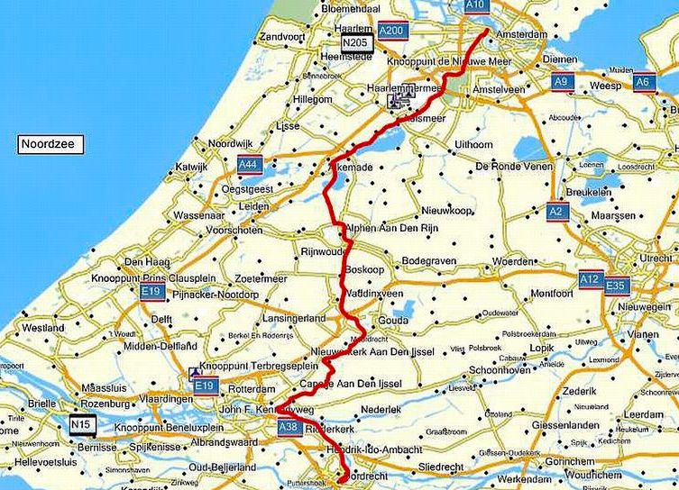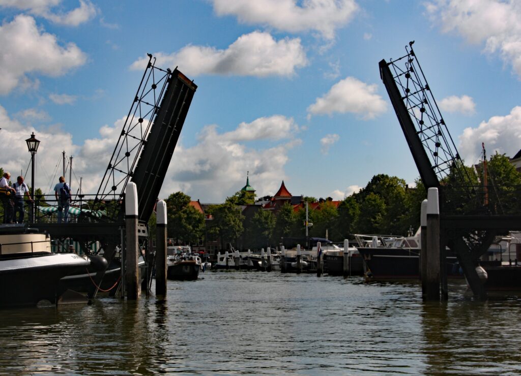 Wir sind um 04:15 Uhr an der großen Autobahnbrücke am Flughafen “Shiphol”, der „Schinkelbrug“, die sich pünktlich um 05:00 Uhr öffnete. Dann fahren wir bei leichtem Regen die “Staande Mastroute“ weiter, leider ist es noch zu dunkel zum Fotografieren, die vielen Hausboote und kleinen Orte wären bestimmt lohnende Motive gewesen.