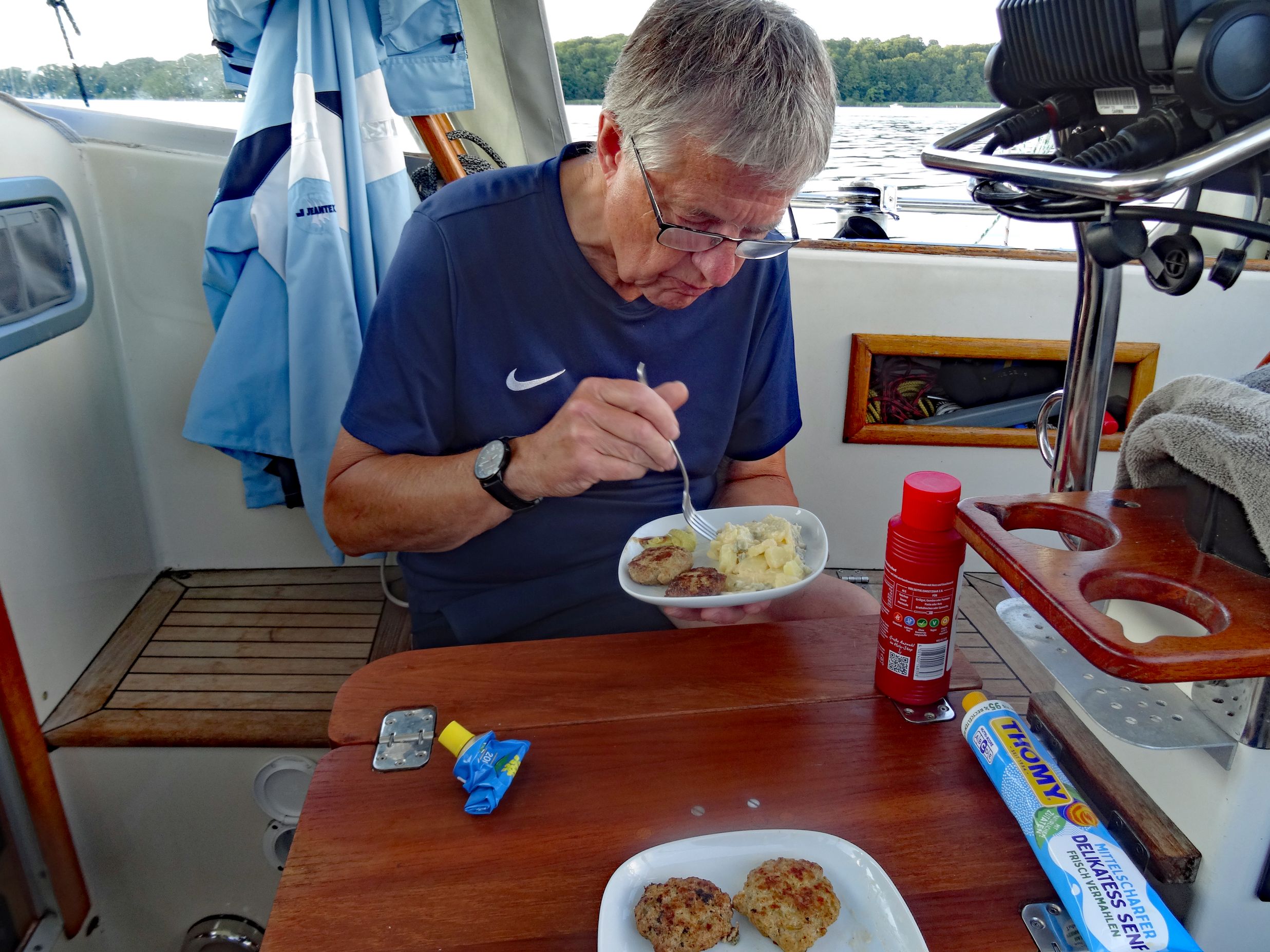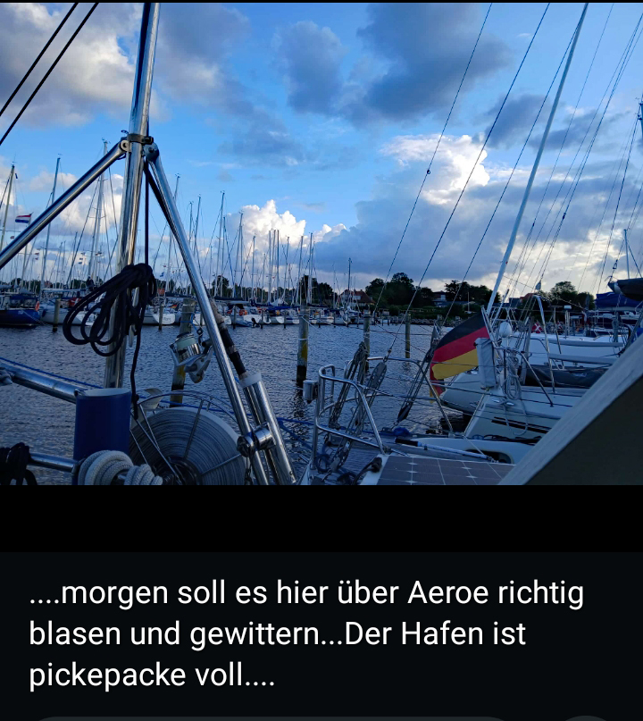 Kurz nach 18:00h hatten wir eine etwas längere Regenpause, in der Wolf dann zum “Netto” gehen konnte, um einzukaufen. Ein großer Markt direkt am Hafen und in dieser Regenpause hatten wohl viele Segler die gleiche Idee. Es war gut voll dort. Morgen soll es weitergehen zur Insel Lyø, wo wir an der Ostseite ankern wollen. Zum Abendessen gibt es die allseits geliebten roten Nudeln. Ich habe auch schon Frikadellen vorgebraten für den kommenden Kartoffelsalat.