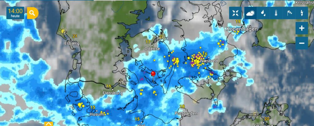 Außer dem Gewitter kam dann auch alles, wie vorausgesagt, besonders der Regen war stark, langanhaltend und kam auch nach kurzen Phasen immer wieder.