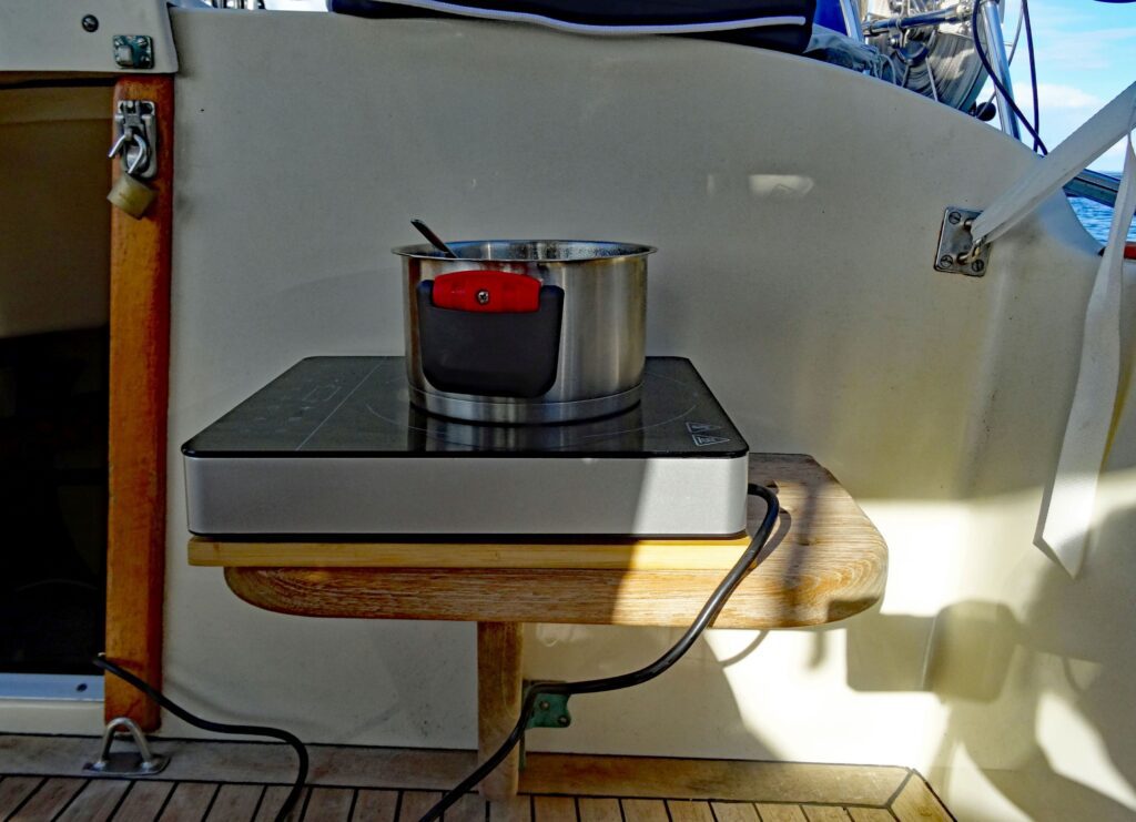 Im Cockpit wird mit Induktion gekocht, unsere Batterien sind voll und der Inverter macht es möglich.