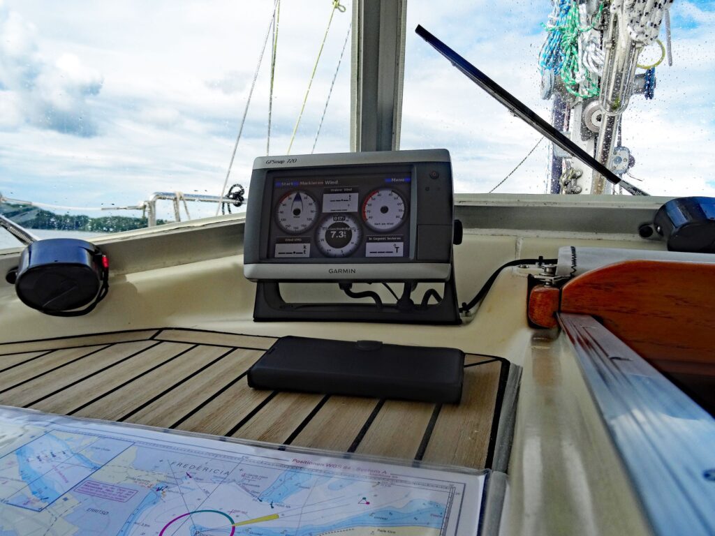 Wir können die Genua nutzen, lassen aber den Motor bei 1.300 RPM mitlaufen. Nach einer guten Stunde droht der Motor wieder auszugehen. Grund ist offensichtlich ein Wackelkontakt im Paneel des Motors/Zündschlosses, der die Dieselpumpe unterbricht. Ein wenig “wackeln” am Zündschloss bringt wieder Kontakt.