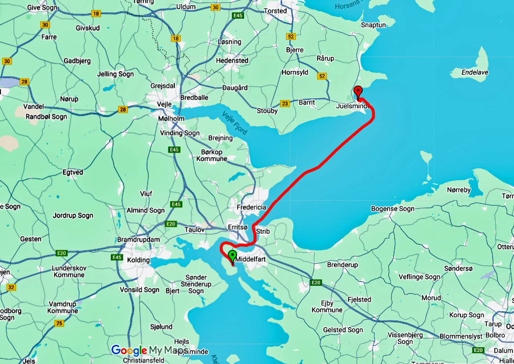 02.08.2025 Samstag - Unsere Route heute: Fænø Bucht ⇒ Juelsminde