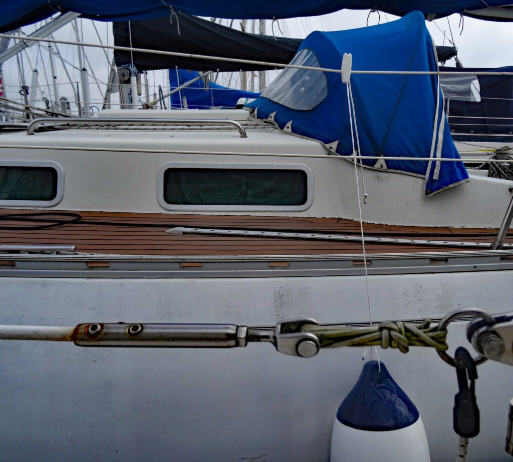 Das dritte Boot ist bei unserem Anlegen nicht belegt, hat aber Fender draußen. Die Leinen für die Mittelklampen liegen im Ankerkasten, da wir mit einer Box gerechnet hatten. In diesem Moment meinte ich: “Ich geh jetzt nach vorne und hole die Leinen!” Adrenalin übertünchte meine Schmerzen. Vom 2. Boot kam der Eigner, ein Schwede, rüber und nahm unsere die Leinen an und das war auch sehr hilfreich. Als ich die Vorleine bei uns festmachen wollte, rief die Schwedin rüber: “Are you ok?” Ein eifriges Nicken und “everything is ok” meinerseits schien sie dann doch etwas zu beruhigen. Ich muss wohl nicht gerade sehr glücklich ausgeschaut haben, daher ihre Frage.