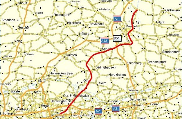 Unsere Route heute: von Fuestrup nach Castrop-Rauxel