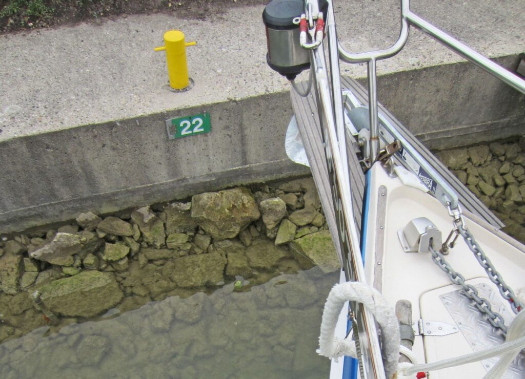 Wir finden dort einen guten Liegeplatz längsseits an der Pier beim Hafenmeister und auch nahe den Sanitäranlagen, die übrigens sehr gut sind. Strom ist auch direkt beim Schiff und der Internetempfang ist auch ganz passabel.