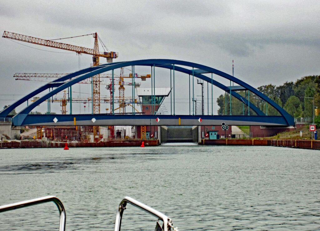 einige Sperrtore, viele Brücken und die Baustelle der neuen Schleuse Münster.