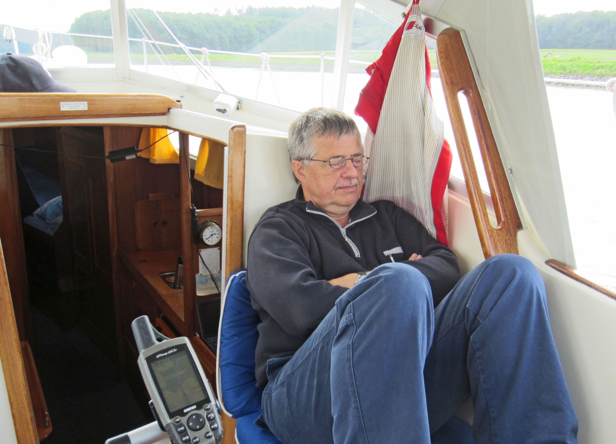 Wir freuen uns an dem doch relativ guten Wetter und wären jetzt, wo wir so über lange Zeit ohne Unterbrechung auf dem Kanal unterwegs sind, doch froh, den Autopiloten zu haben. Der liegt aber z.Zt. bei einem Forenmitglied und wartet dort auf eine fachmännische Begutachtung und evtl. Reparatur.