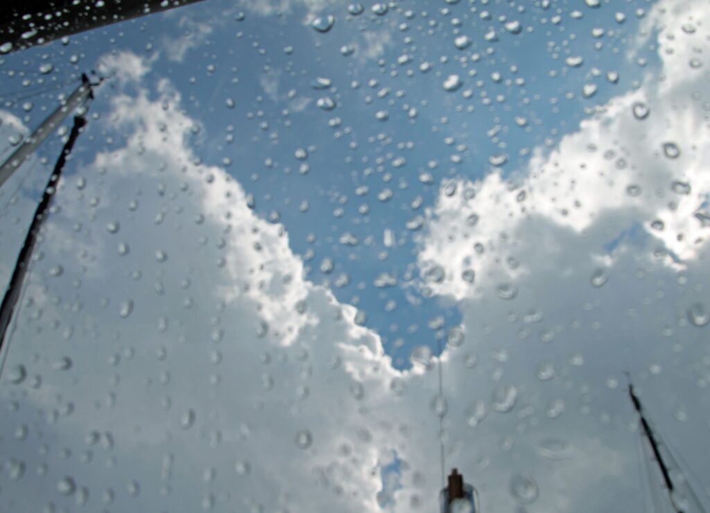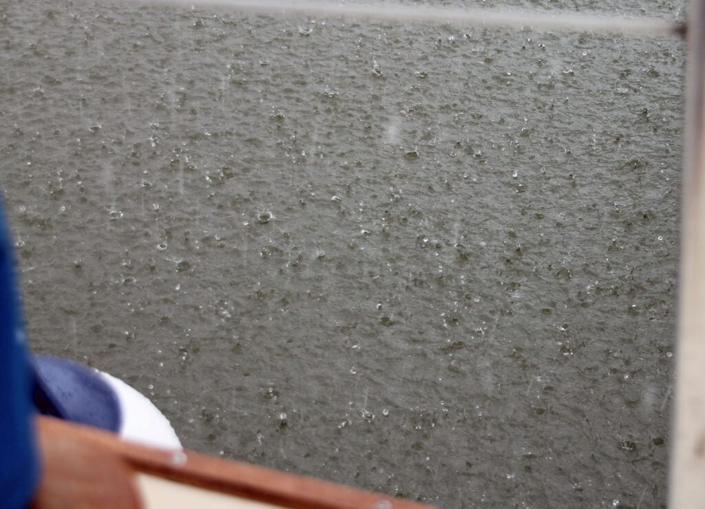 Glück gehabt, das war knapp. Der Himmel öffnete buchstäblich alle Schleusen. Doch wir saßen trocken und gut in unserer Kuchenbude und sahen dem Regen zu.