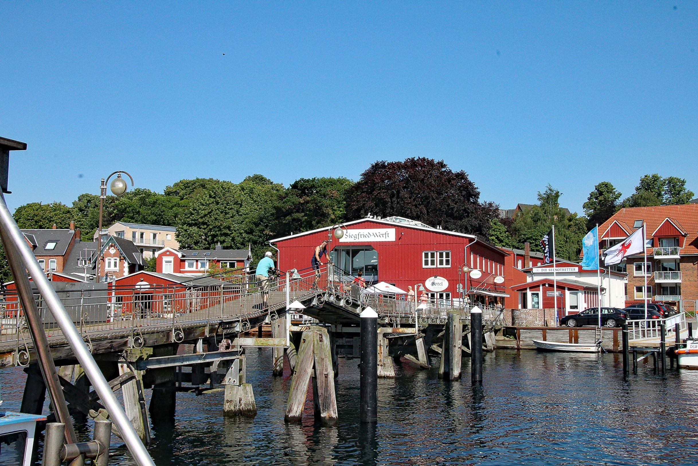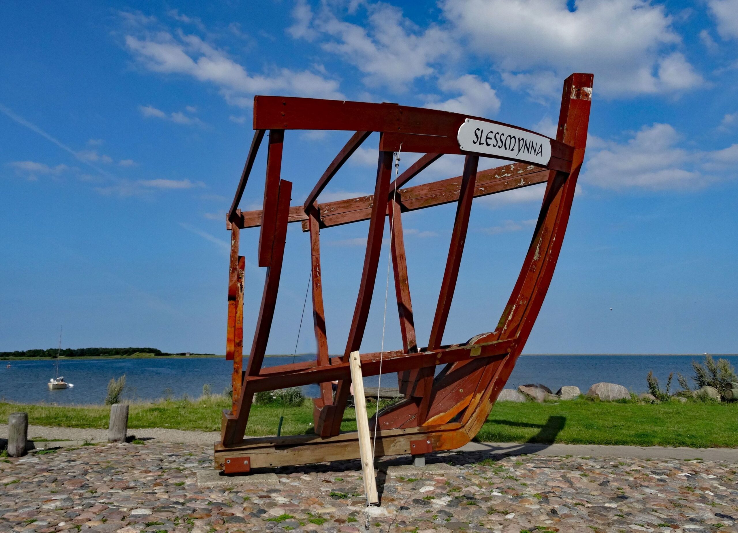 Wir erfahren auf Nachfrage, dass man nur per Schiff nach Schleimünde kommt. Na dann eben nicht, mit dem Ausflugsdampfer wollen wir dann auch nicht wirklich mitfahren.