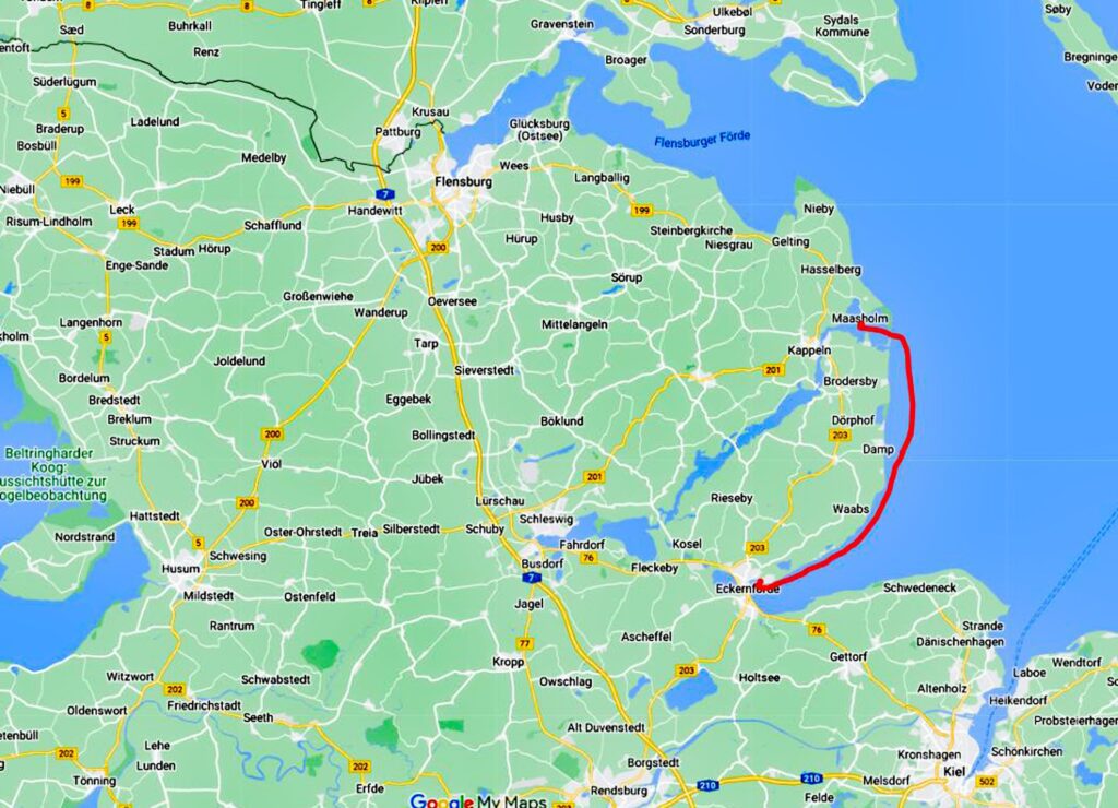 05.08. 2015 – Mittwoch: Unsere Route heute: Eckernförde ⇒ Maasholm