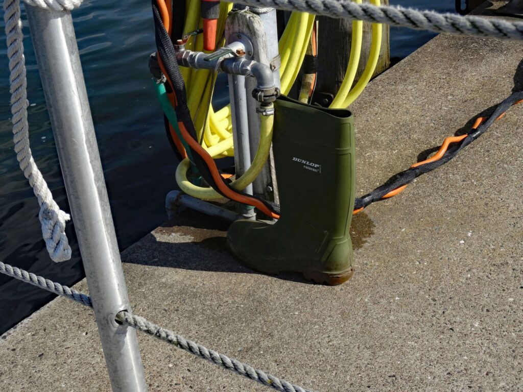 Wir beteiligen uns dann doch „maßgeblich“ an dem Einsatz, indem wir für einen Seenotretter einen verlorenen Gummistiefel suchen, finden und am Anleger deponieren. Der gute Mann hätte ja sonst noch seinen Einsatz verpasst :-))