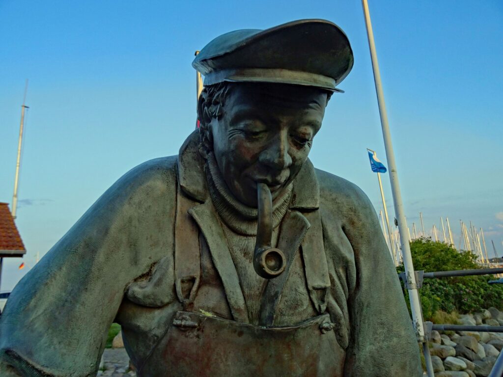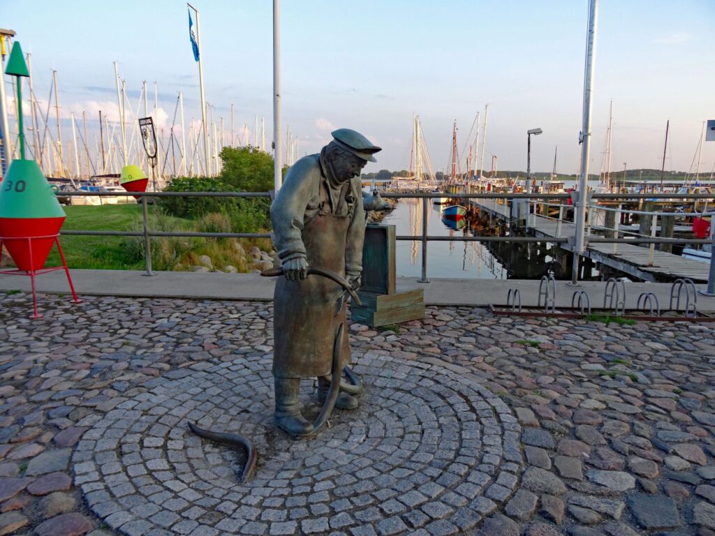 Bronzefigur von „Peter Aal“ von Bernd Maro, die seit 1999 im Yachthafen steht.