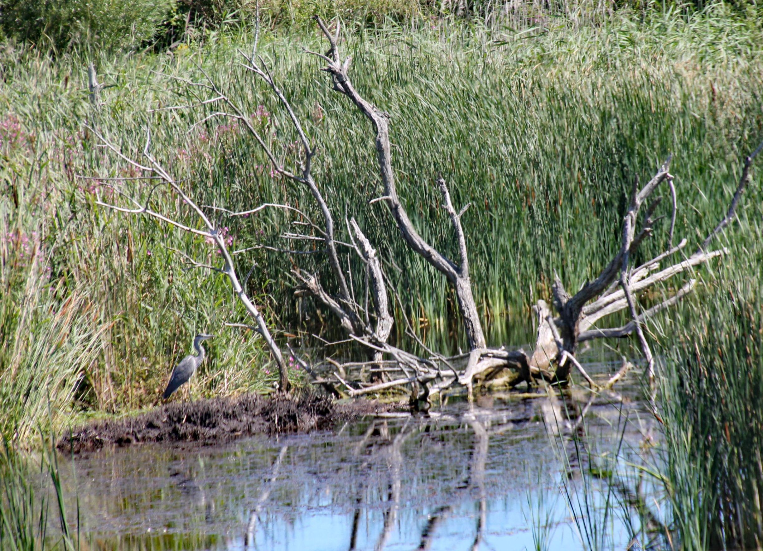 Zurück geht es wieder durch Natur pur. Den Fischreiher auf dem rechten Bild kann man leider kaum erkennen. Er war leider zu weit weg.