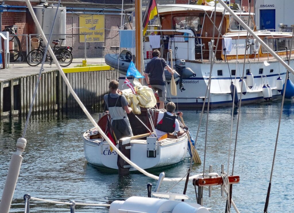 Am Nachmittag fährt Wolf noch schnell einkaufen und schaut sich das Hafenkino im großen Yachthafen an: Charterboote beim An- und Ablegen zuschauen bringt doch immer Vergnügen.