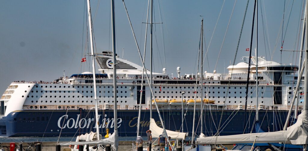 Reger Betrieb der großen „Pötte“, die direkt am Hafen vorbeifahren