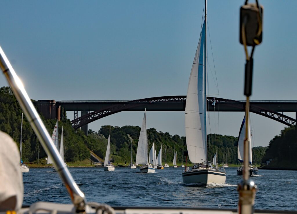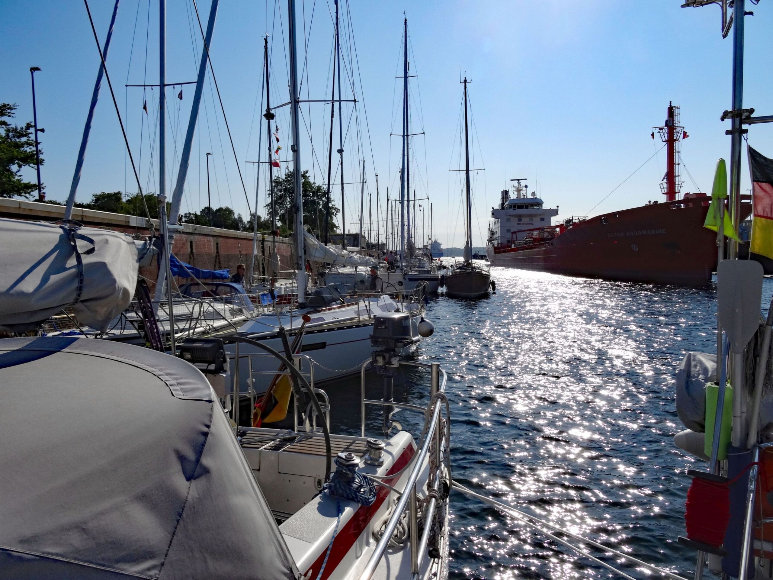 Eine gute Stunde später verlässt der große Pulk die Schleuse und es geht mit Genua und Maschine in Richtung Rendsburg