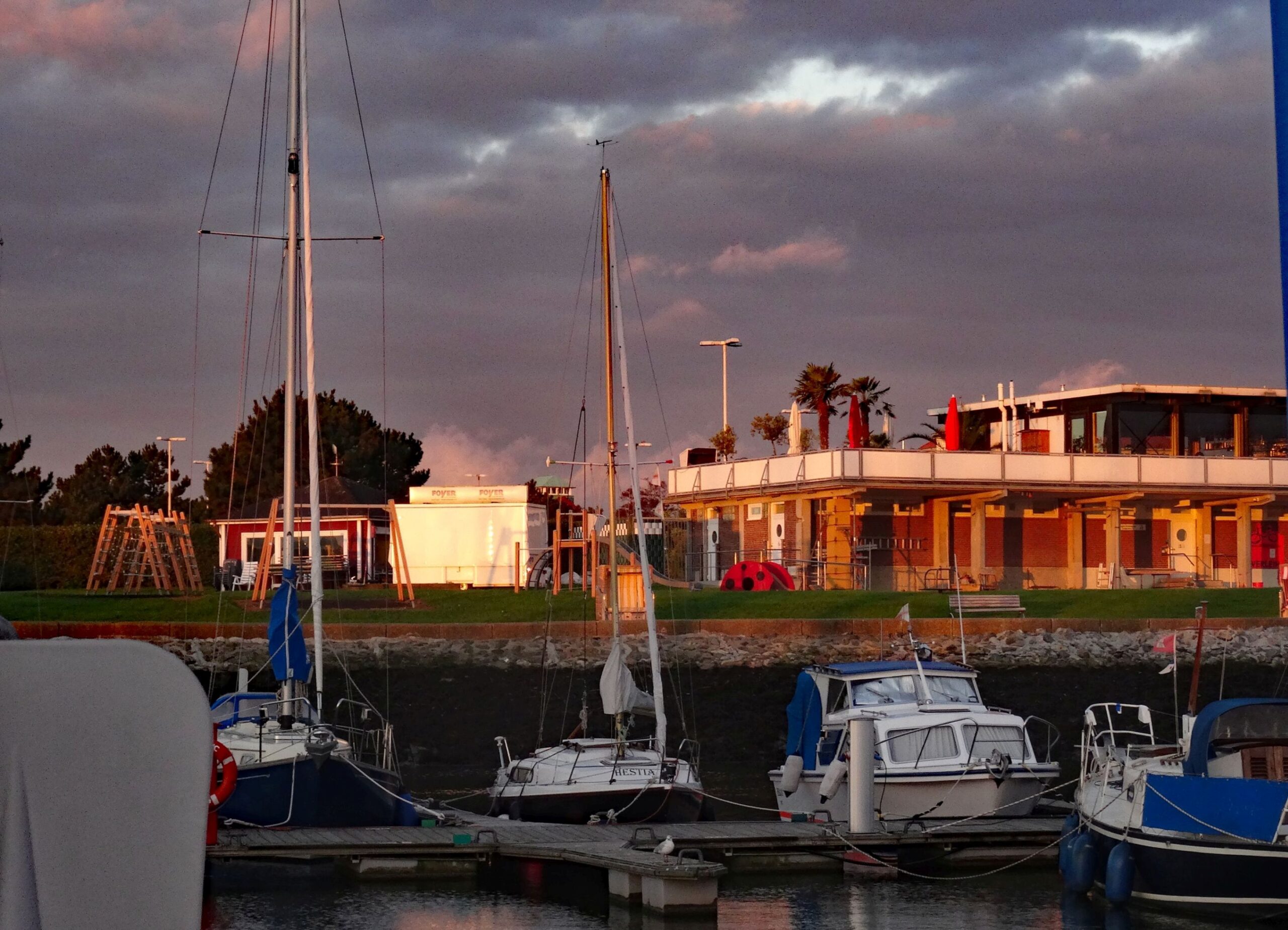Am Nachmittag machen wir einen Spaziergang zur „Alten Liebe“ und durch die gesamten Hafenanlagen. Wettermäßig haben wir Glück. Überwiegend scheint die Sonne, nur selten schieben sich einmal Wolken vor die Sonne.