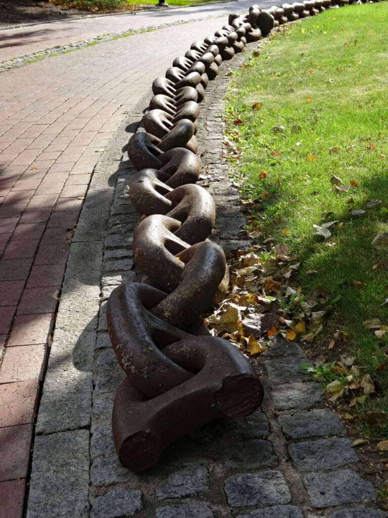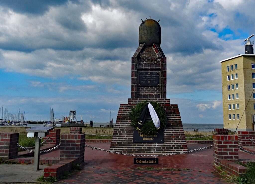 Das Minensucher-Ehrenmal wurde 1935 eingeweiht. Der Mittelpunkt ist eine echte Seemine aus dem 1. Weltkrieg.