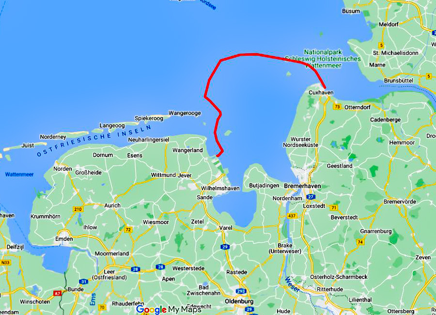22.09.2016 - Donnerstag: Unsere Route heute: von Cuxhaven nach Hooksiel