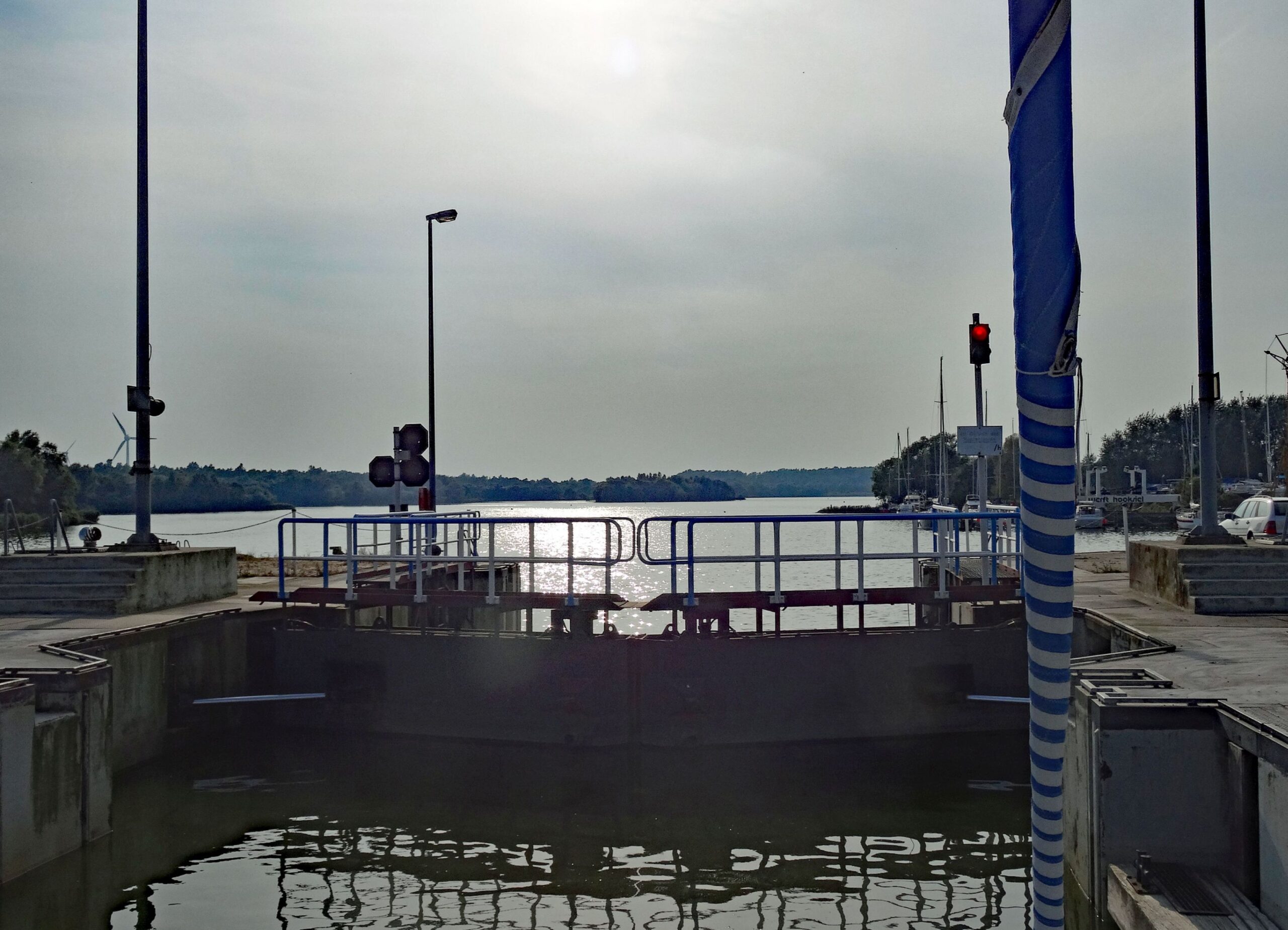 Wir können dann die 16:00 Schleuse nehmen und machen dann später unter meiner Führung in unserer Box fest, da der Schwindel noch immer nicht verschwinden will.