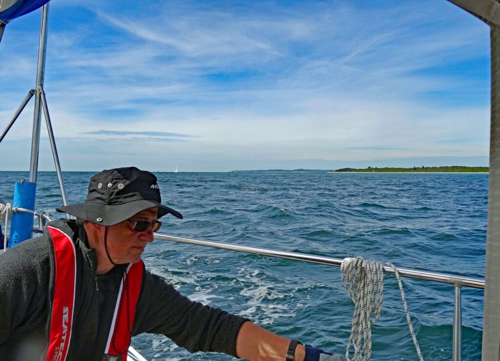 Gegen 06:00h starten wir, laufen aber nur unter Segel nur 3 Kn., das ist zu wenig für heute gute 60 Seemeilen. Deshalb lassen wir den Motor noch mitlaufen.