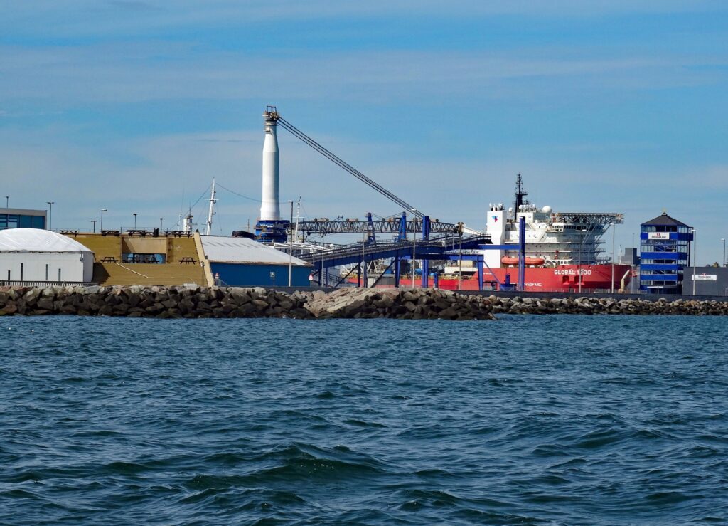 … doch wir sehen auch vom Hafen aus viel Industrie, nicht verwunderlich, da dies der Basishafen für den Offshore-Windpark Anholt ist.