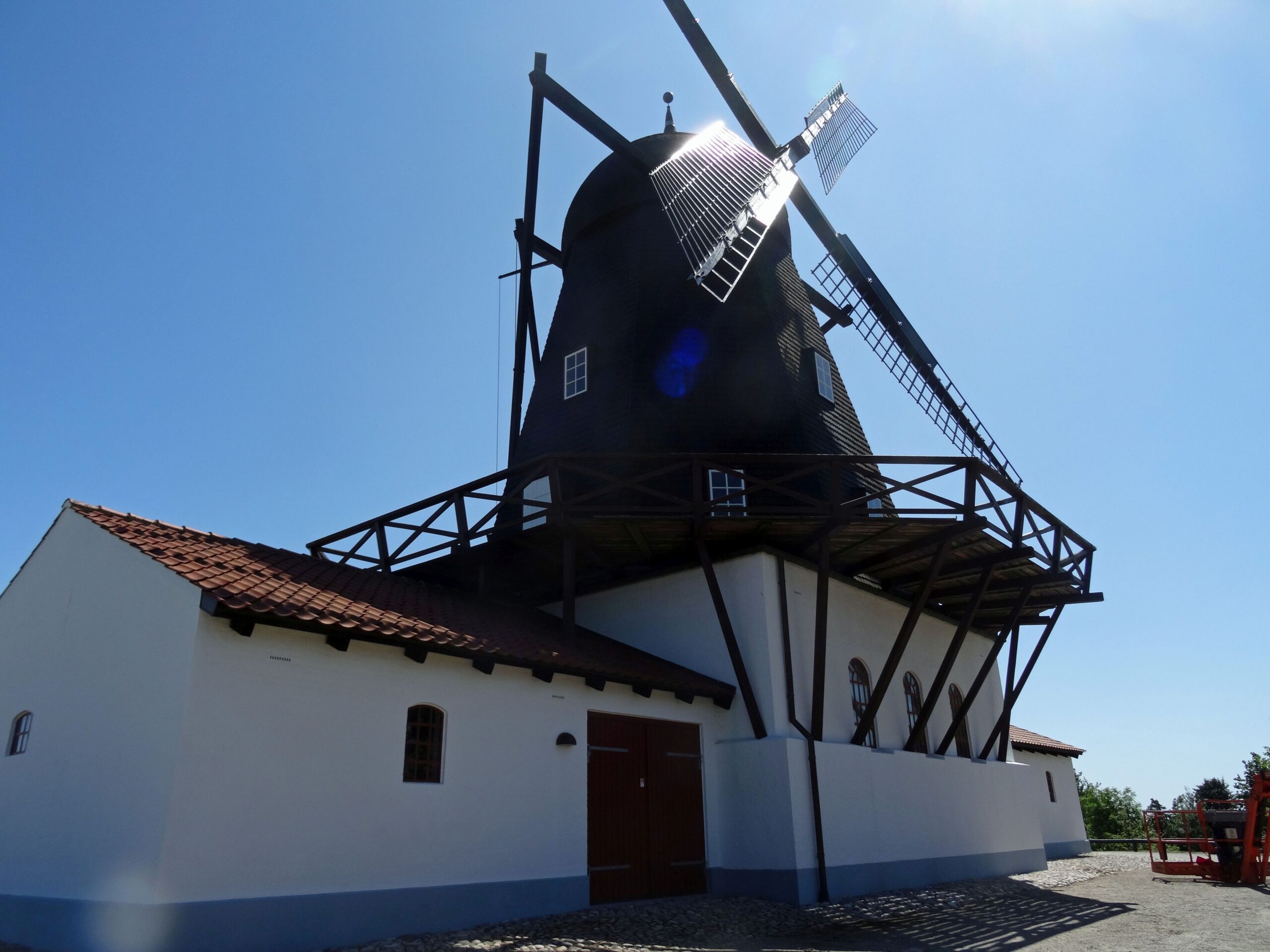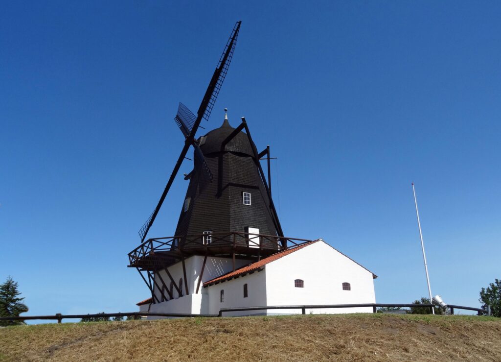 Von der Stadt aus fahren wir noch zu der alten Baunhøj Mølle, einem Wahrzeichen von Grenaa. Sie steht auf der höchsten Erhebung, 37 m über dem Wasserspiegel.
