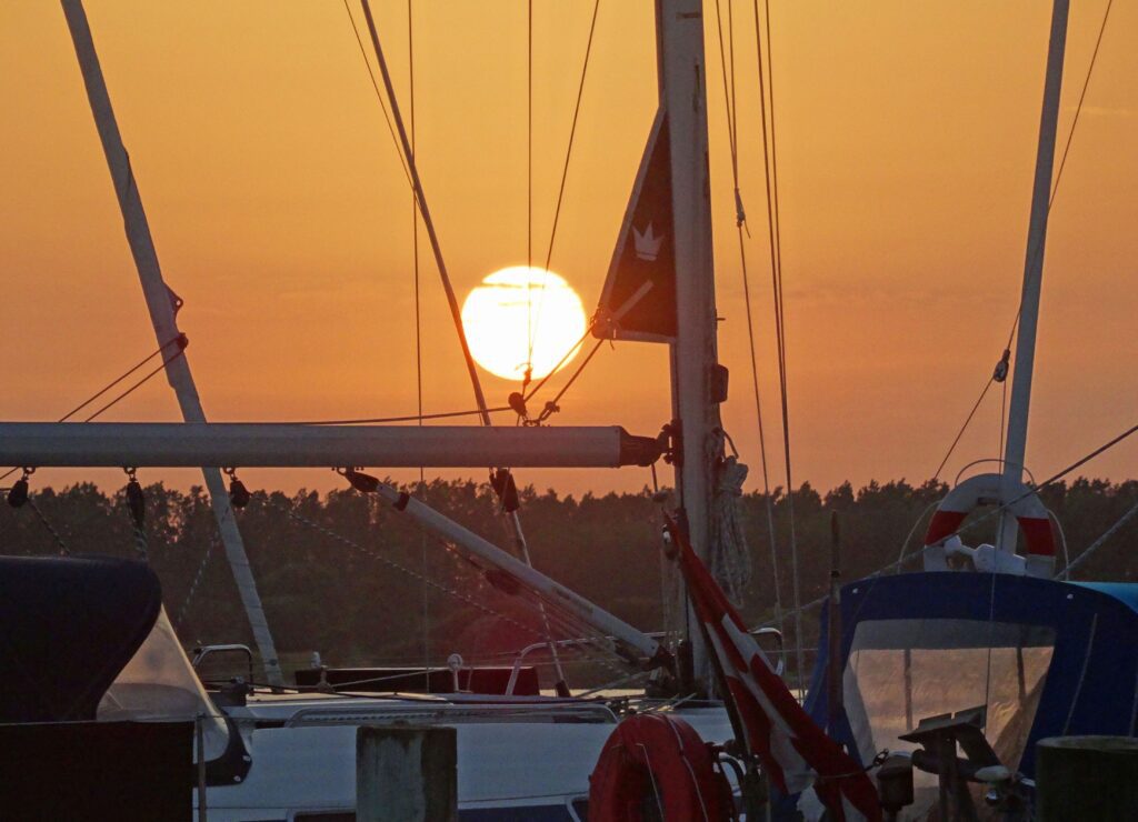 Mittlerweile hat ein stark böiger Wind aus West angefangen zu blasen. Auf unserem Liegeplatz liegen wir genau richtig. Abends essen wir einfach: Camembert mit Pellkartoffeln und Spitzkohlsalat. Danach im TV das Endspiel der U21 gegen Spanien, was wir verdient mit 1:2 verlieren.