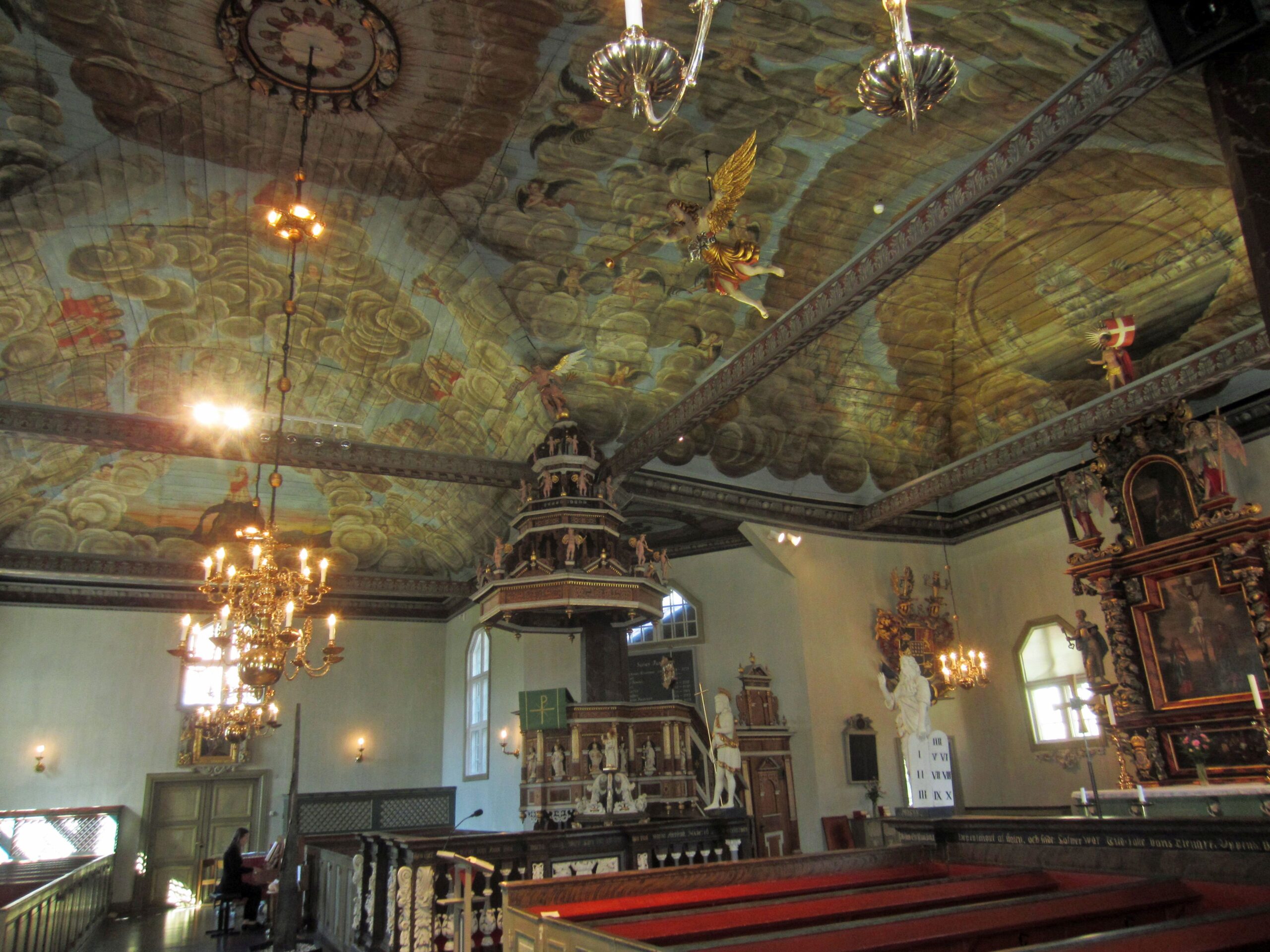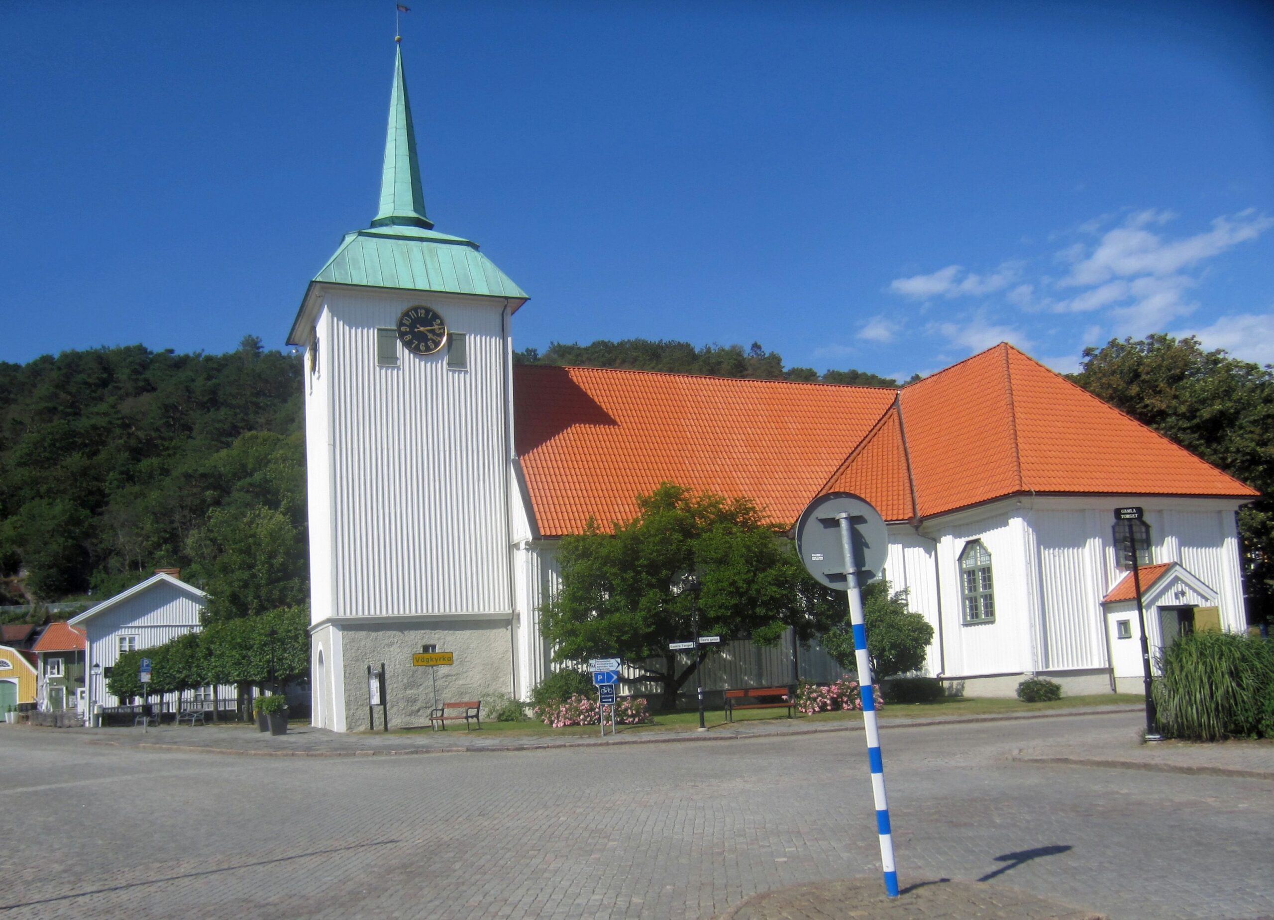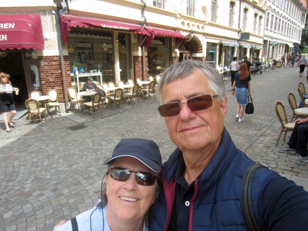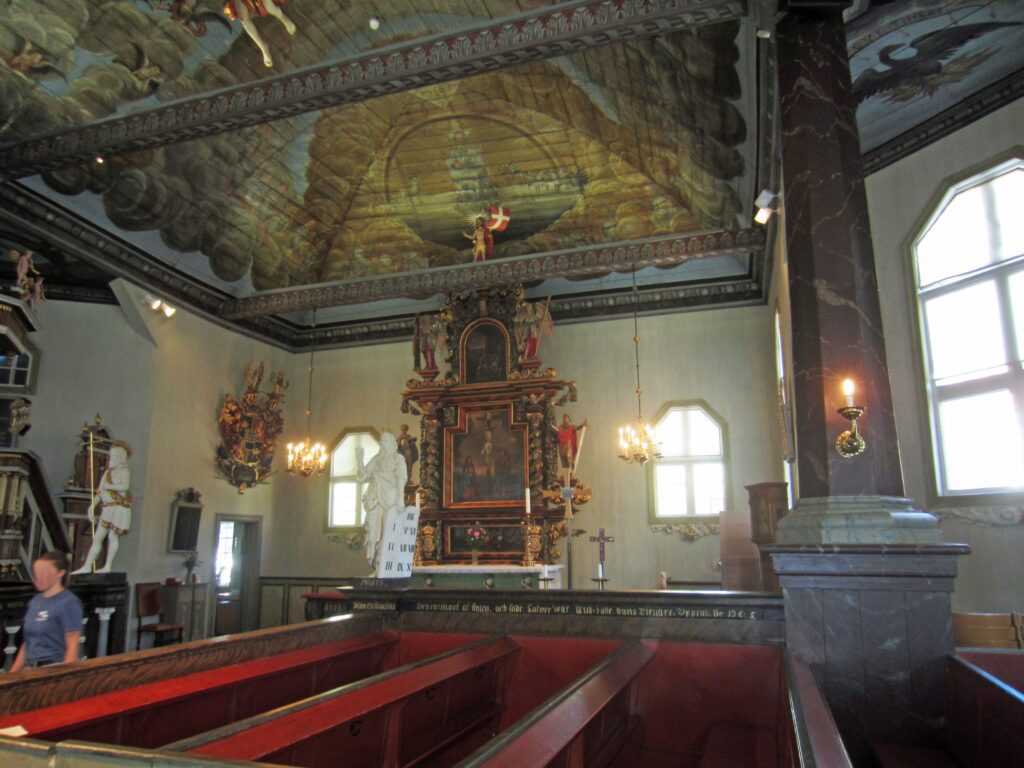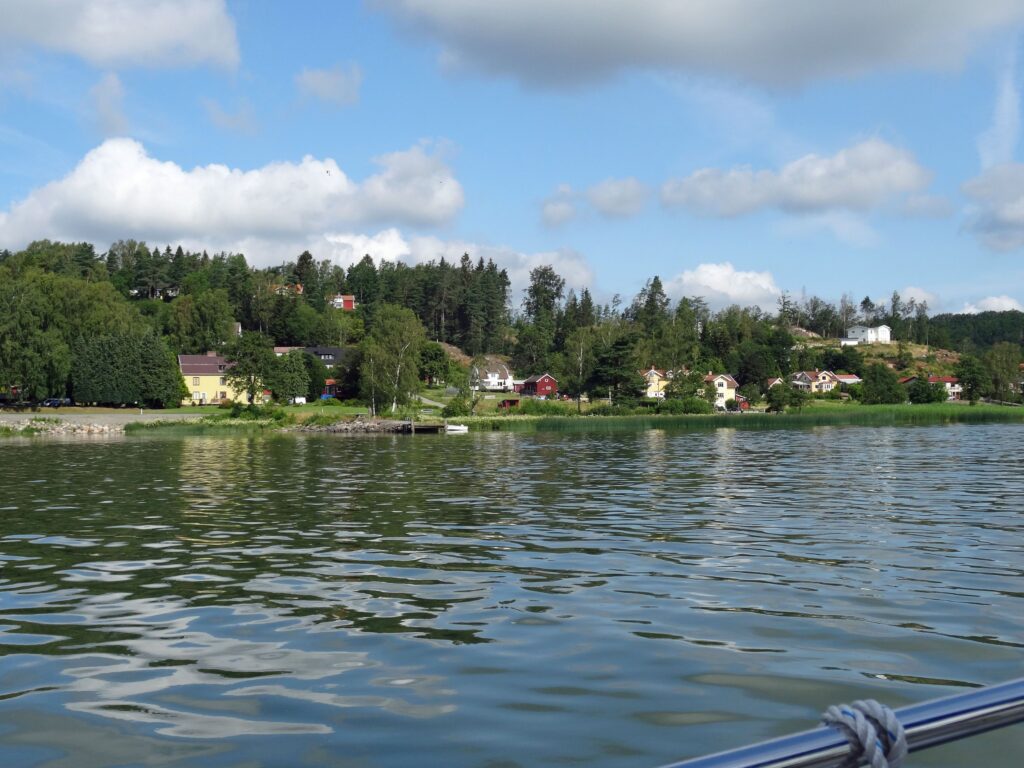 O-Ton Wolfgang: Wir finden eine wunderschöne alte Holzkirche mit bemaltem Holzgewölbe und eine sehr schöne Altstadtstraße mit ganz vielen alten Wohnholzhäusern, sehr gut renoviert und gepflegt. Auch einen schönen Park gibt es hier, ein Coop am Ende der Altstadtstraße, ca. 1,5 Km von unserem Liegeplatz entfernt