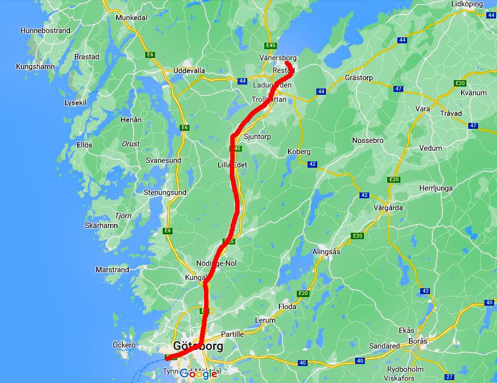 Nach kurzer Besprechung entschließen wir uns, morgen bis Lilla Edet zu fahren. Dort werden wir auch am nächsten Tag weiterfahren, um dann etwas länger Zeit in Trollhättan zu haben.