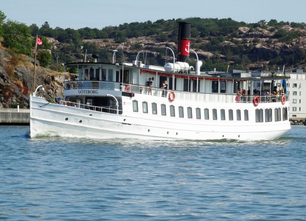 Hier begegnen uns nun auch die ersten typischen schwedischen Ausflugsschiffe