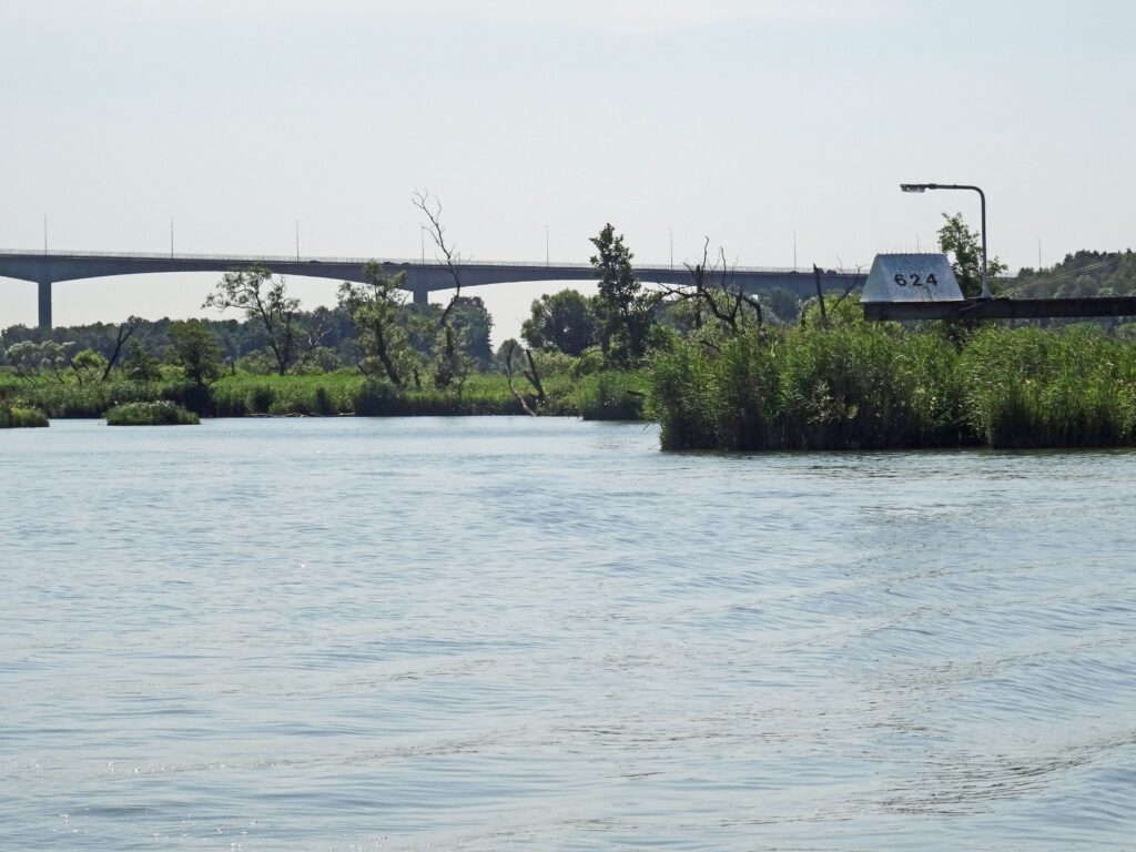 Dann fahren wir auf dem Kanal, Fahrt nach Dalben bzw. die langen Ausleger mit Radarreflektoren, Richtung Nord. Denen sollte man nicht zu nahe kommen :-))